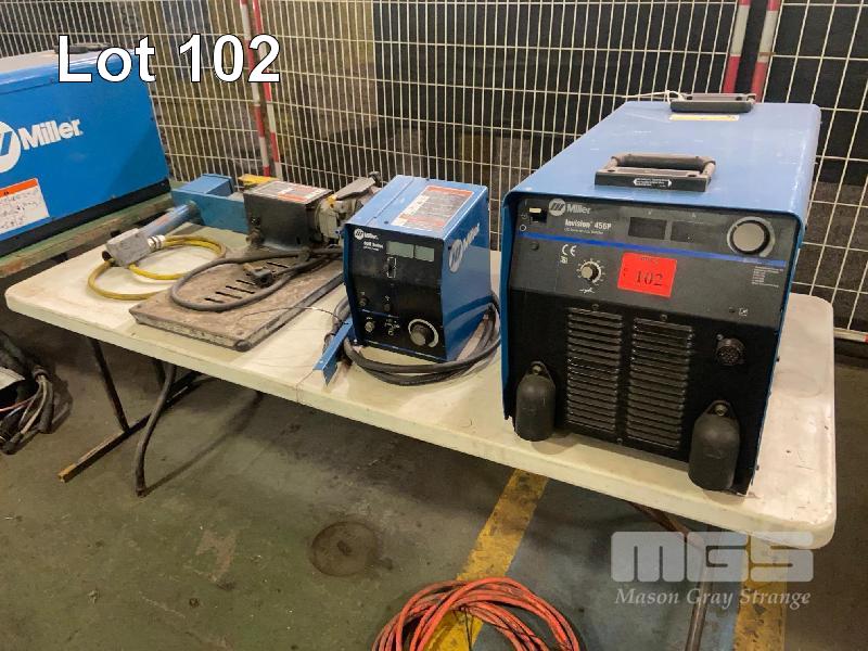 MILLER INVISION 456P , MIG/ ARC WELDER WITH 60 M SERIES WIRE FEEDER AND CONTROLLER, LINK CABLES.