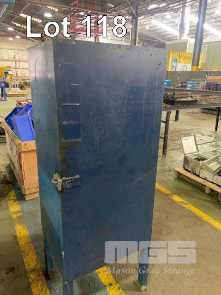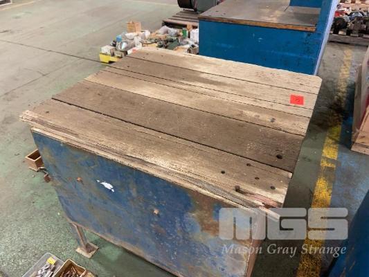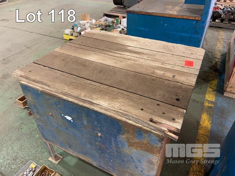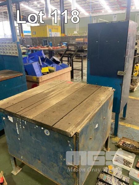 WORK BENCH, 1000 x 900mm, TIMBER TOP, SINGLE DOOR & STEEL STOCK CUPBOARD, SINGLE DOOR, 1600 (H) x 600 (W) x 500mm (D)