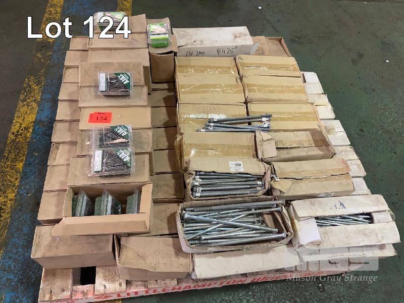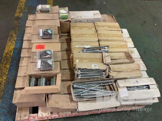 LARGE QUANTITY HARDWARE, CUP HEAD BOLTS, VARIOUS LENGTHS, NAILS, NEW IN BOXES CONTENTS 1 PALLET
