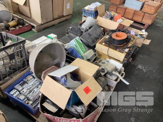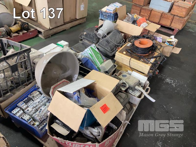 ASSORTED FLURO TUBES, LIGHT GLOBES, CIRCUIT BREAKERS, ELECTRICAL SUB BOARDS, PLUS BASES & SWITCHES, CONTENTS 3 PALLETS