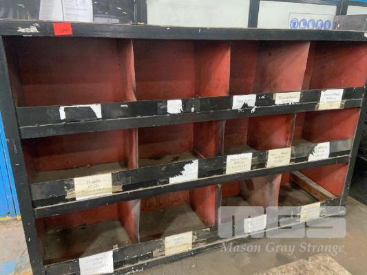 HEAVY DUTY STEEL PARTS BIN, 12 HOLE, 2470 (L) x 1580 (H) x 570mm (D)
