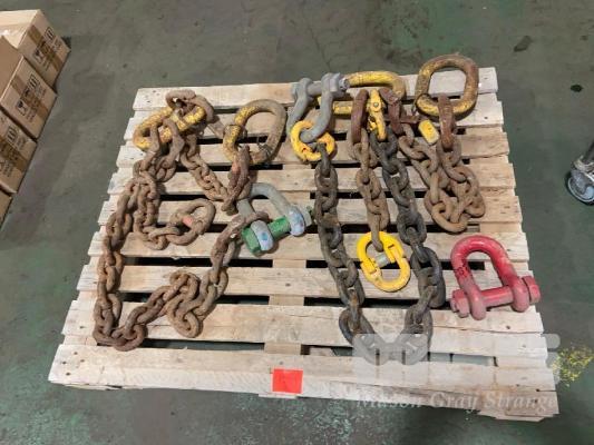 3 x HEAVY DUTY SHORT LIFTING CHAINS, WITH RINGS & SHACKLES