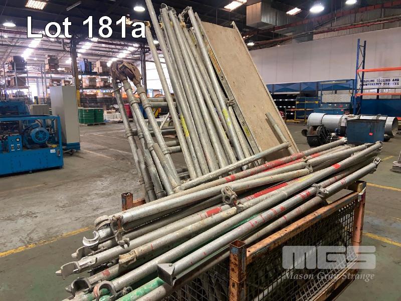 ALUMINIUM SCAFFOLD SET 2 x UPRIGHTS & LOCK WHEELS 8 x UPRIGHT PANELS WALKWAY 15 x BARS INCLUDING STABILIZERS NOT INCLUDING STILLAGE
