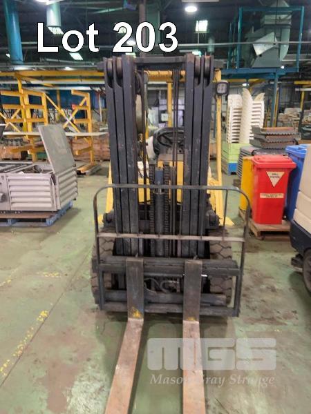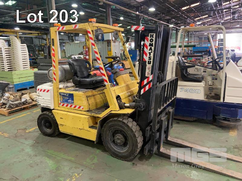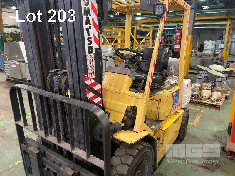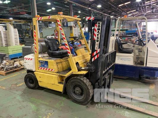 FORKLIFT, KOMATSU FG25 3 STAGE CONTAINER MAST SIDE SHIFT, PNEUMATIC TYRES, LIGHTS, REVERSE BUZZER , MIRRORS , GOOD SEAT. RUNS WELL 3439 HOURS.