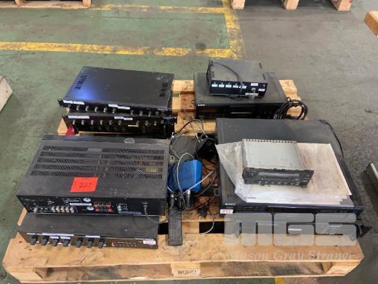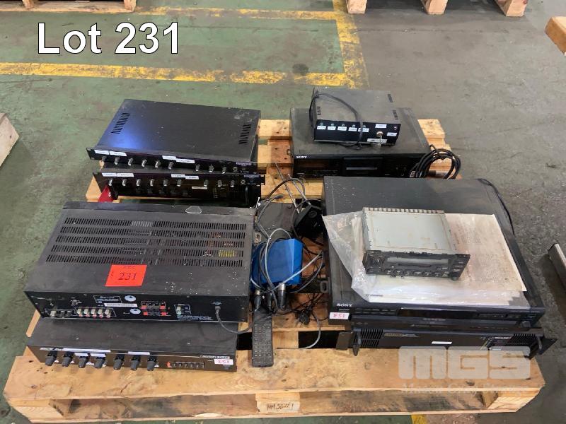 ASSORTED AMPLIFIERS, CD PLAYER, TAPE DECK, 8 PIECES, SONY, REDBACK, TELEX