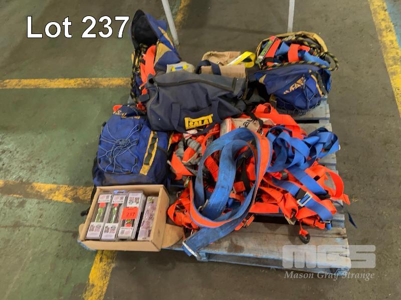 ASSORTED SAFETY GEAR INCLUDING, HARNESS SETS, RELIEF STEPS