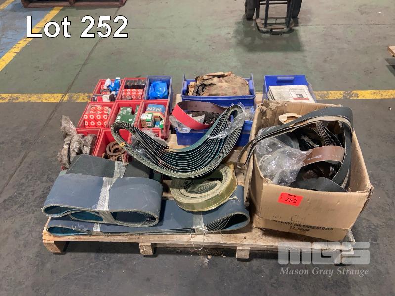 ASSORTED LINISHING BELTS, DRIVE CHAINS & BEARINGS