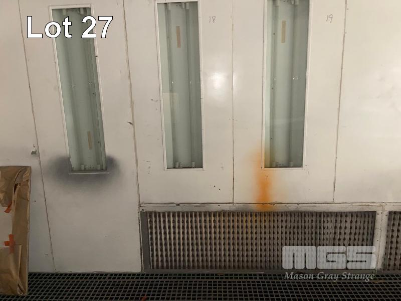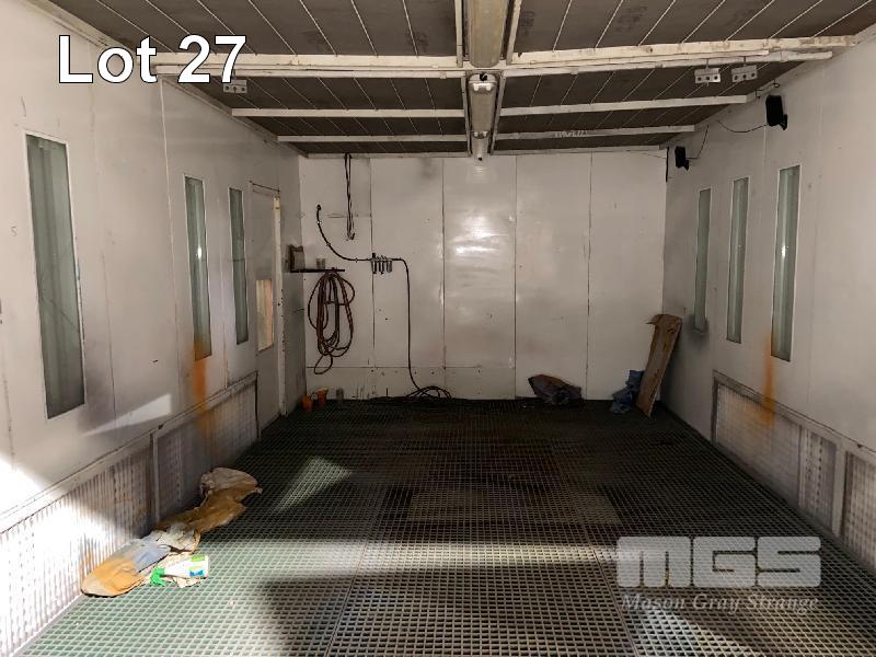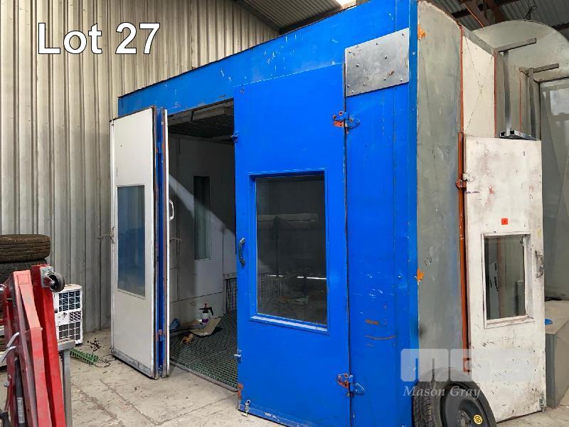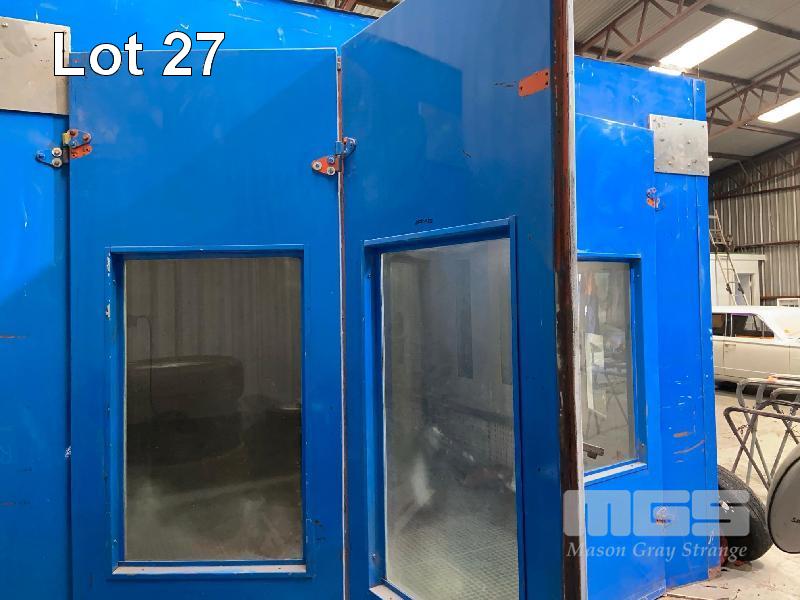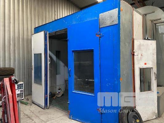 SPRAY BOOTH, BLOWTHERM PRE FAB PANEL, 7 x 4 x 4m APPROX GRID BASE FLOOR SIDE DRAFT EXTRACTION DIESEL HEAT SIDE MOUNT ROOF EXTRACTION FRONT DOUBLE DOOR P/A ACCESS, LIGHTING (REMOVAL BY BUYER, ROOF TO BE CAPPED)