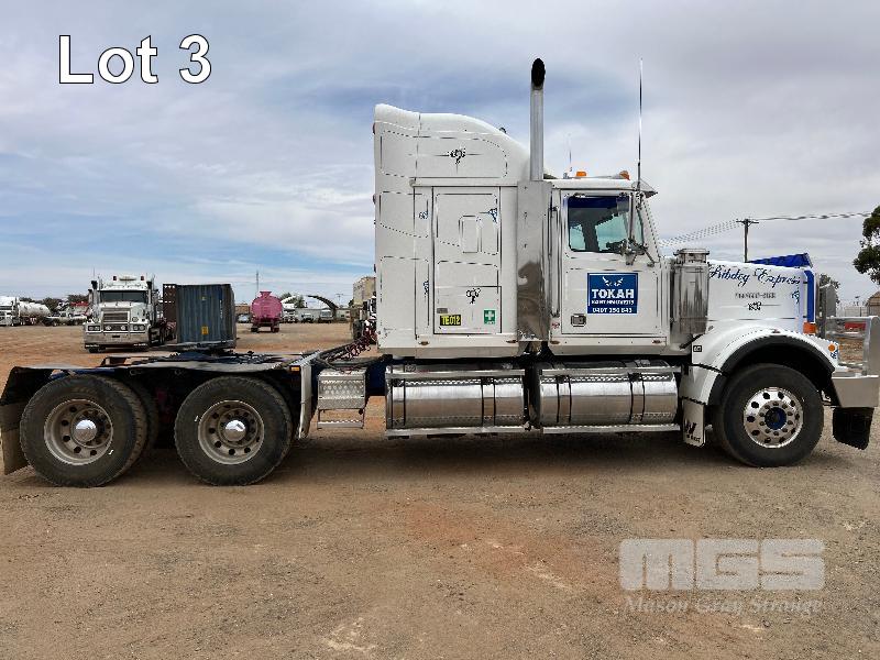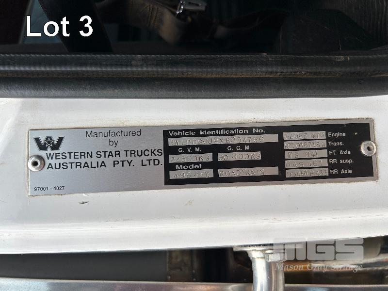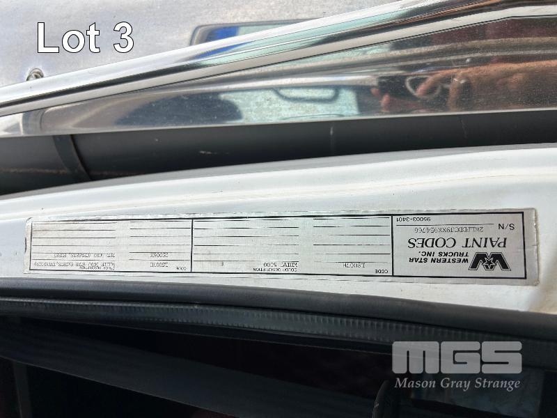 TE012 - YN26XF 06/1998 WESTERN STAR 4900. VIN: 2WLPDDCJ9XK954766. 1,800,000KMS CATERPILLAR 6NZ C15 WITH 18 SPEED ROADRANGER. COMPLETE IN-CHASSIS REBUILD AND NEW CYLINDER HEAD DONE AT 1,650,000KMS IN JULY 2023 HYDRAULICS FITTED 90 TONNE RATED TE012 - REG YN26XF 11% BUYERS PREMIUM