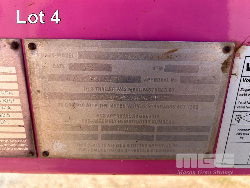 12/2015 MICK MURRAY WELDING TRI-AXLE WATERTANK TRAILER SOUTHERNCROSS WATER PUMP TE08 - VIN: 6K9T25MMWFC150011 11% BUYERS PREMIUM