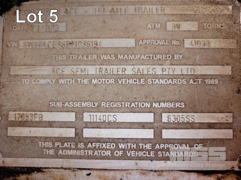 2012 TRI AXLE ACE WATERTANK TRAILER SOUTHERNCROSS WATER PUMP TE018 - VIN: 6W9TACE3SBM038194 11% BUYERS PREMIUM