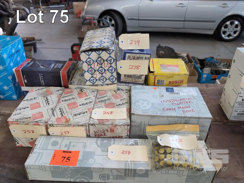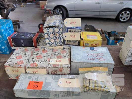 NEW SPARE PARTS INC LATE MODEL MERCEDES BOLTS, HIGH MOUNT STOP LIGHTS, 3 X WATER PUMPS, INSTRUMENT CLUSTER, IGNITION COILS, PULL ROD BAR BUSH ETC