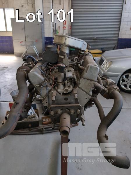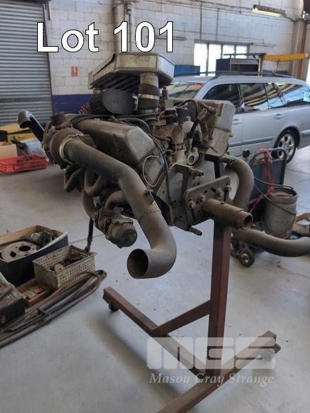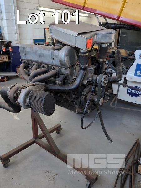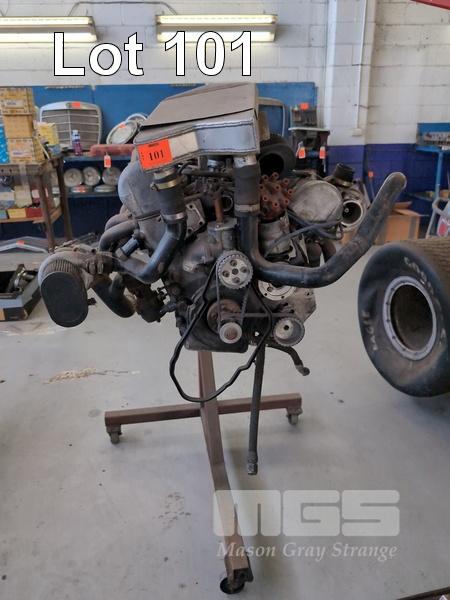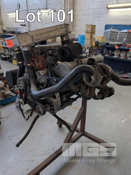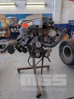 MERCEDES BENZ 3.5 LTR V8 TWIN TURBO ENGINE, DRY SUMPED, FUEL INJECTED, TWIN WASTE GATE SYSTEM, PREVIOUSLY FITTED IN SPRINT CAR, ON ENGINE STAND