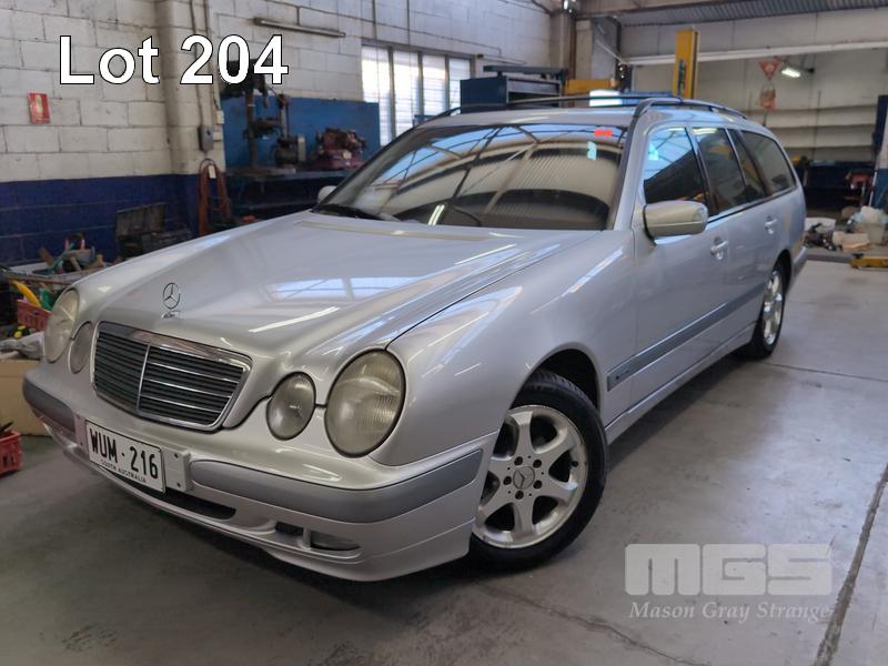 2002 MERCEDES BENZ E240T STATION WAGON REG: WUM216 (SA) (EXPIRED) VIN: WDB2102622X080975 ENG: 11291431263810 ODO: 201,195 2.4 LTR, 5 SPEED AUTO, PETROL, SILVER, 5 DOORS, 7 SEAT, ABS, AIR BAG, AIR CON, ALLOY WHEELS, CD PLAYER, CENTRAL LOCKING, CRUISE CONTROL, IMMOBILISER, LEATHER TRIM, POWER STEERING, POWER WINDOWS, ROOF RACKS, SPARE WHEEL, TRACTION CONTROL (WITH PAPERS, WITH 1 KEY/S, WITH OWNER'S MANUAL, WITH SERVICE BOOKS)