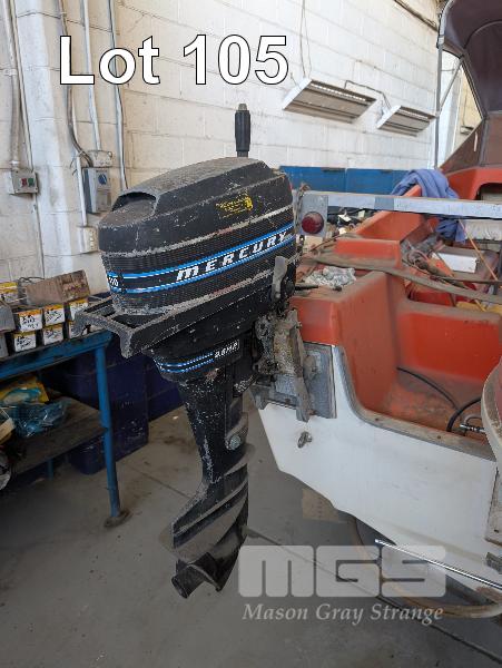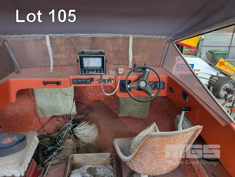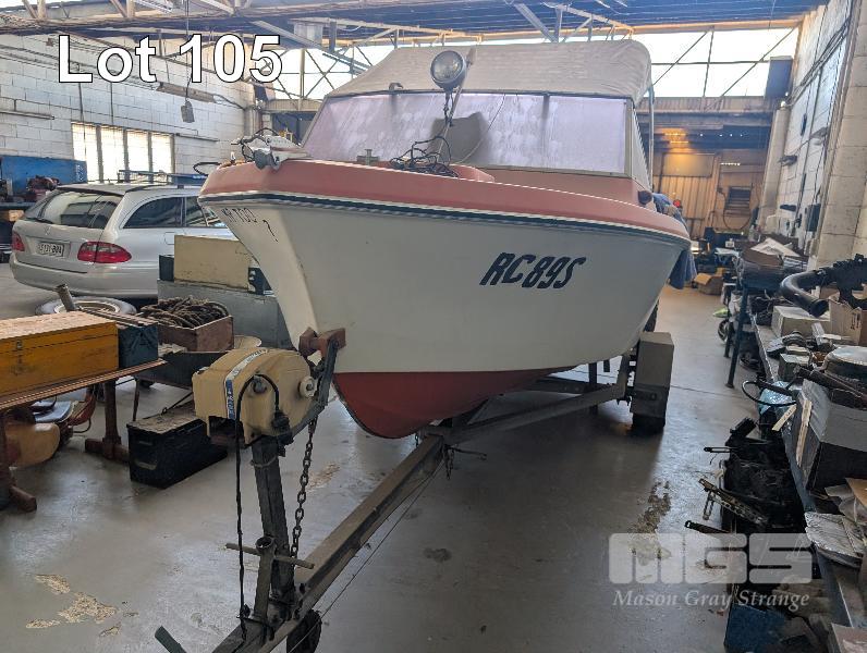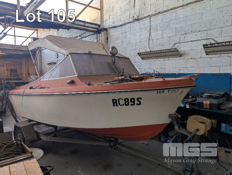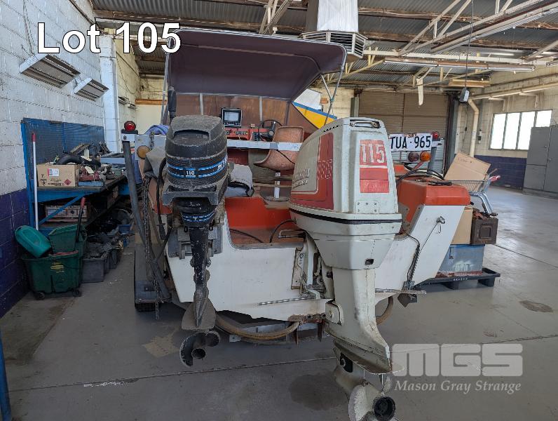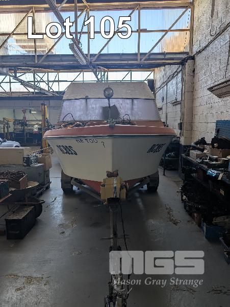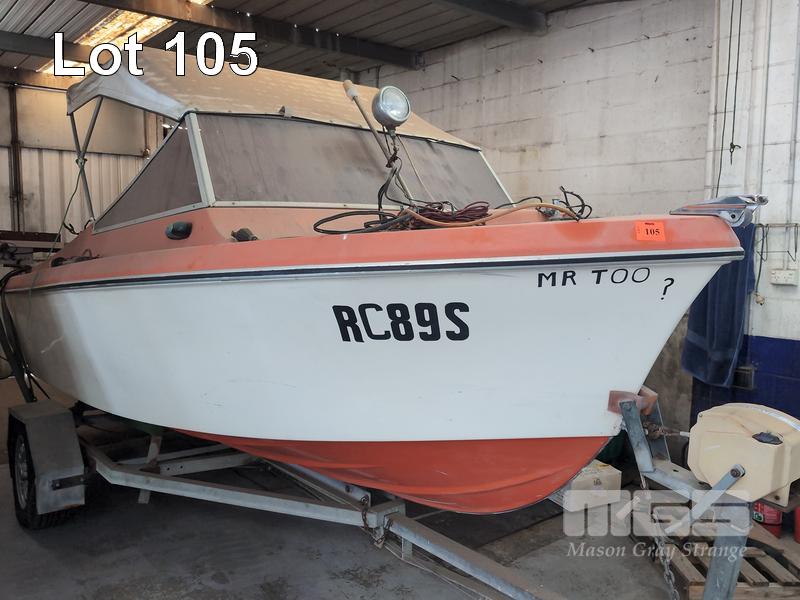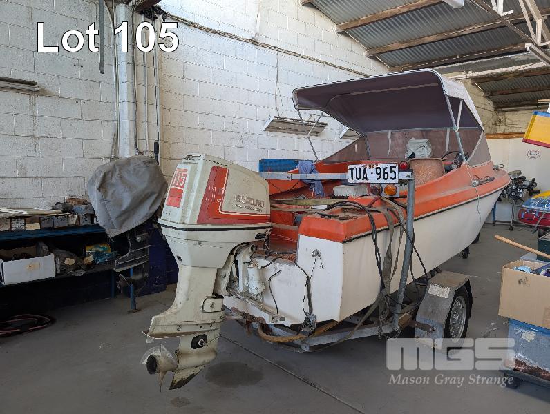 1978 FIBREGLASS RUNABOUT FISHING BOAT 4.7 MTR REG: RC89S 115 HP & 9.8 HP OUTBOARDS, WHITE/ORANGE, ON 1977 PREMIER BOAT TRAILER REG TUA965 (WITH PAPERS, NO OWNER'S MANUAL, NO SERVICE BOOKS)
