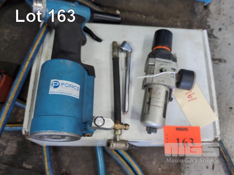 PNEUMATIC POP RIVET GUN, RATTLE GUN, HOSE, FILTER REGULATOR & TYRE INFLATOR ATTACHMENTS