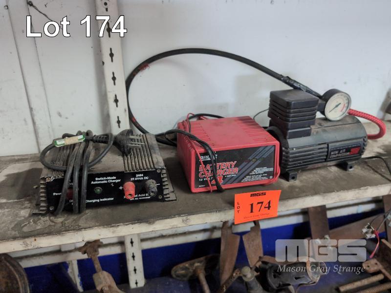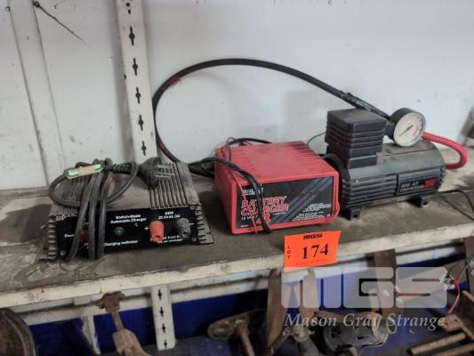 2 X BATTERY CHARGERS & 12V TYRE PUMP