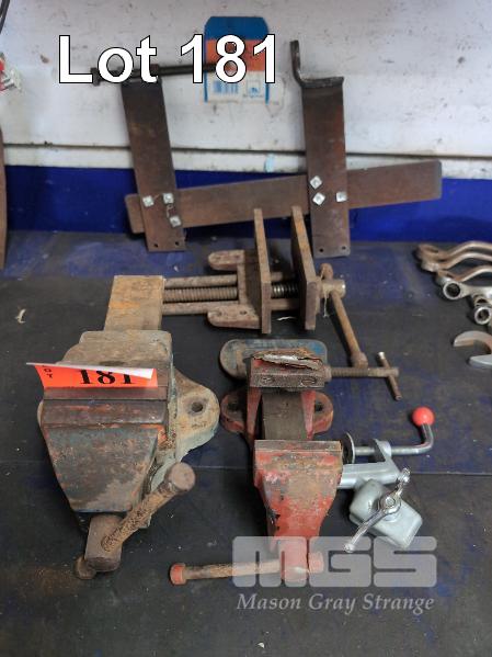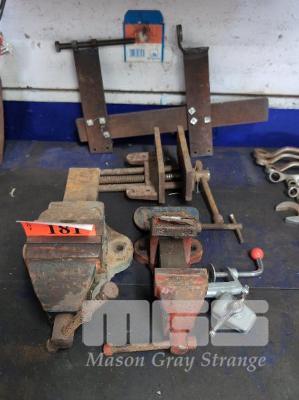 2 X BENCH VICES, JOINERS VICE, CLAMPS ETC