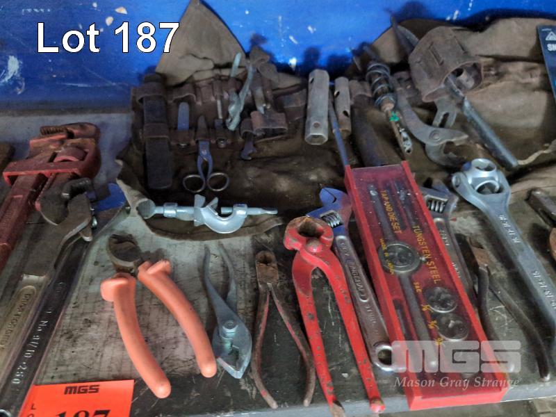 ASSORTED HAND TOOLS, TAP & DIE SET ETC