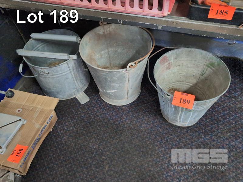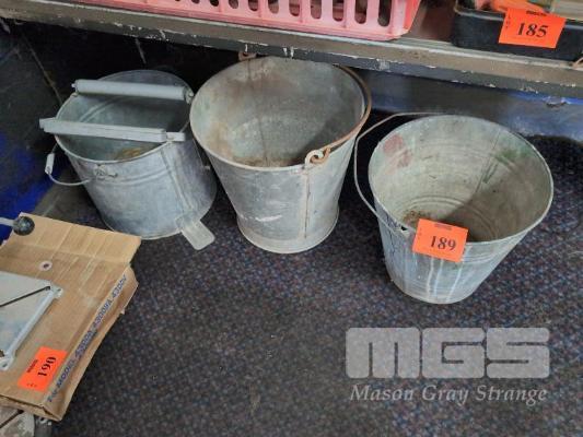 2 X GALV BUCKETS & VINTAGE MOP BUCKET