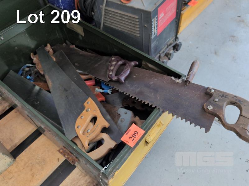STEEL TOOL BOX & CONTENTS INC HAND SAWS INC VINTAGE