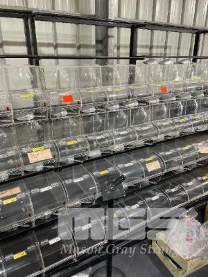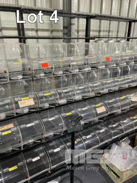 16 BIN CLEAR POLY, LOOSE PRODUCT RXCK 4 TIER, STAGGERED SUIT NUTS, LOLLIES, ETC 1900 (H) x 900m (W) INCLUDES BAG STAND