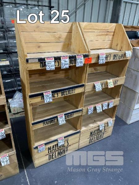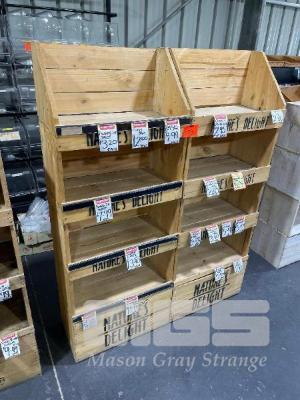 2 x TIMBER FRUIT CRATE DISPLAY STANDS, 4 TIER