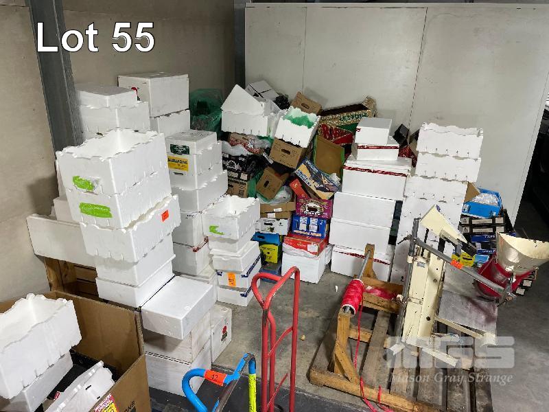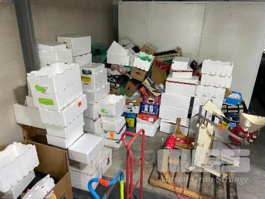 LARGE QUANTITY STYROFOAM & CARDBOARD BOXES & PLASTIC TUBS