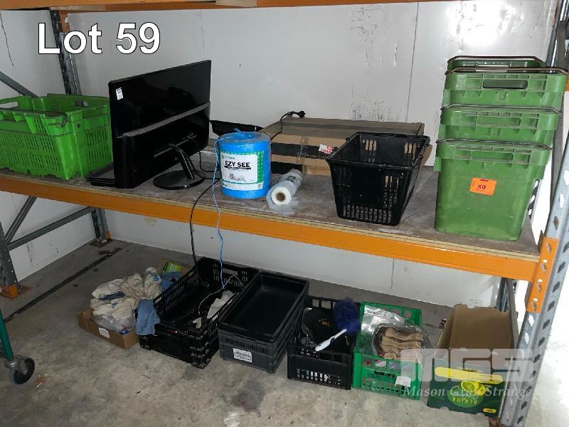 ASSORTED TUBS & TRAYS, MICROWAVE, TWINE, ELEC CORD, CONTENTS PALLET RACK