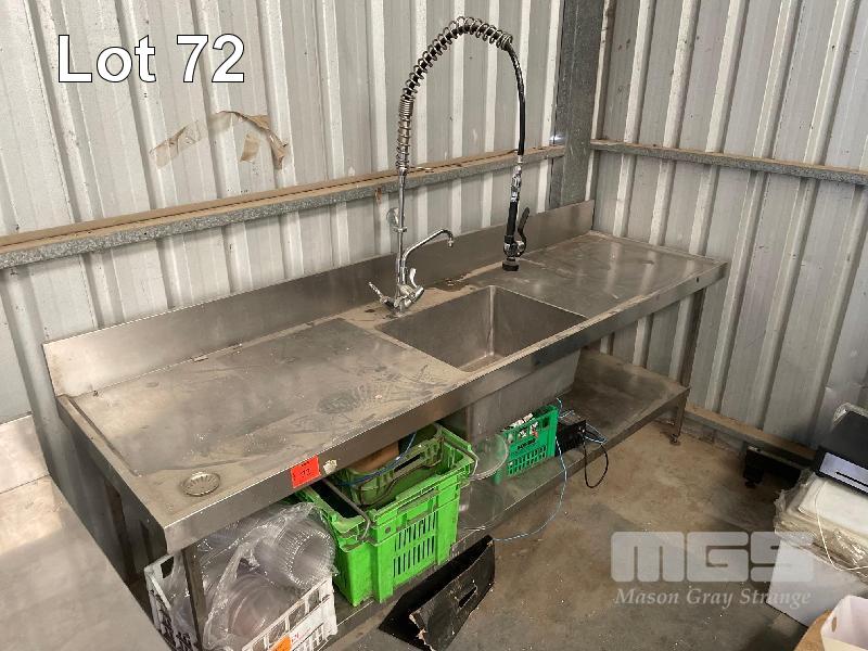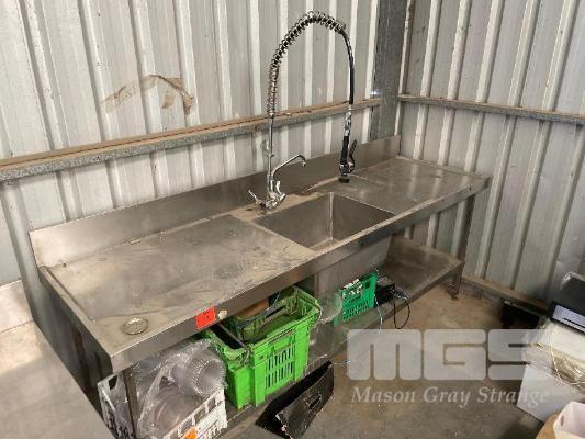 DEEP SINGLE BOWL STAINLESS STEEL SINK WITH TAPWARE, 2400 x 670 x 900mm WITH OVERHEAD PLATE WASH