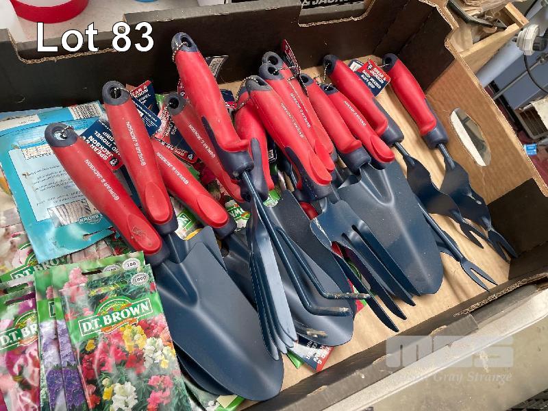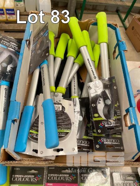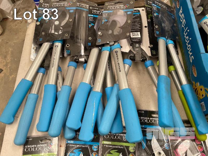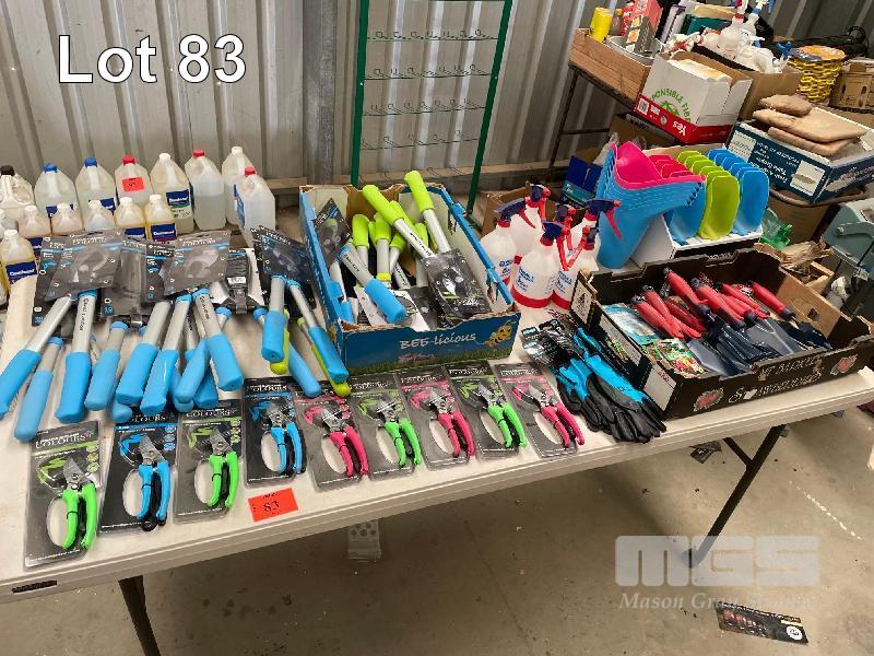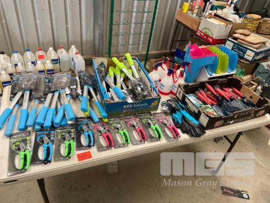 GARDEN TOOLS INCLUDING PRUNING SHEARS, SPRAY BOTTLE, HAND SHOVELS, LONG HANDLE SHEARS AS NEW.
