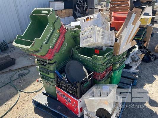 ASSORTED PLASTIC TRAYS, HOSES, & PRODUCT TRAYS, 5 x PALLETS
