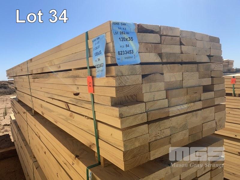 6233453 PACK OF UNTREATED PINE DAR TIMBER MERCH GRADE 120X35 84 LENGTHS, 1/2.4,32/3.0,35/3.6,16/6.0 = 320 L/M