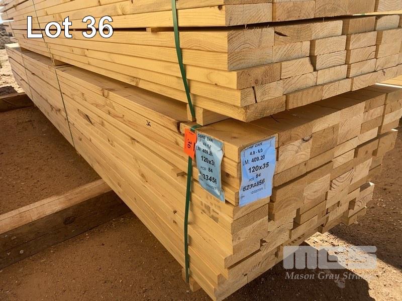 6233456 PACK OF UNTREATED PINE DAR TIMBER MERCH GRADE 120X35 84 LENGTHS, 79/4.8,5/6.0 = 409 L/M