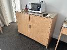 EXECUTIVE ROOM CONTENTS INCLUDING: QUEEN SIZE ENSEMBLE & HEADBOARD 2 x BEECH TIMBER BEDSIDE TABLES, 2 DRAWER, GLASS TOP 2 x TABLE LAMPS, 240V LIGHT GREY FABRIC 2 SEAT COUCH, WALL MOUNT 32" TV WITH REMOTE, BEECH TIMBER BUFFET, GLASS TOP, SQUARE DINING TABLE & 2 x LIGHT GREY FABRIC DINING CHAIRS SINGLE DRAWER DESK, GLASS TOP, 2 TIER LUGGAGE BENCH, GUARD ALL DIGITAL SAFE, WALL ART / MIRROR, MICROWAVE, KETTLE, BAR FRIDGE ROOM #10