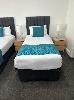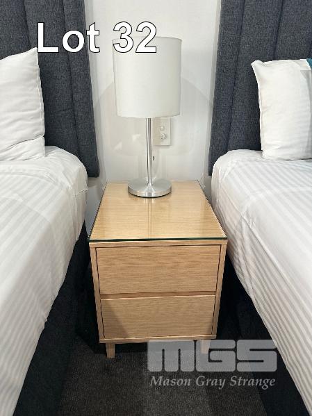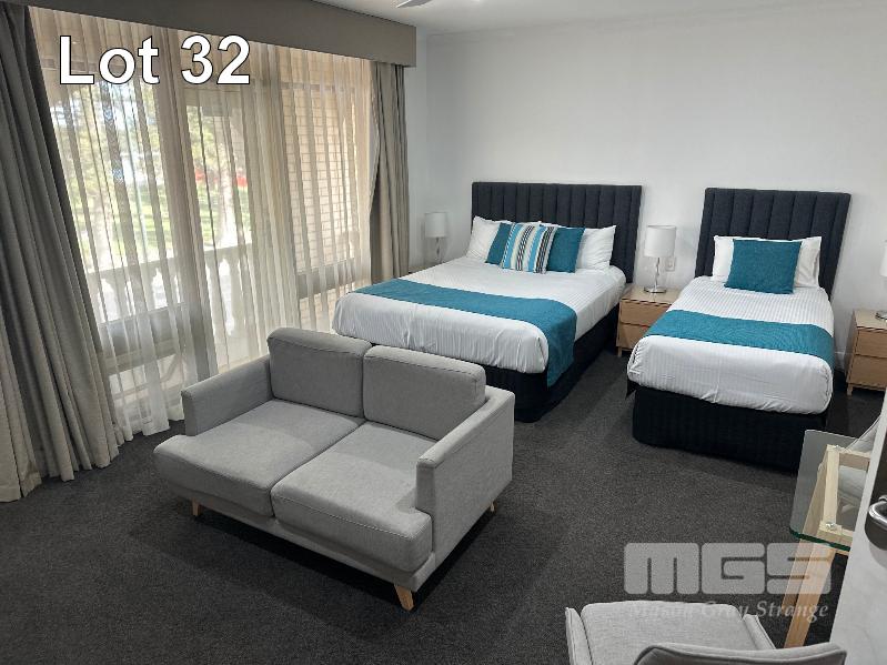 DELUXE ROOM CONTENTS INCLUDING: QUEEN SIZE ENSEMBLE & HEADBOARD SINGLE SIZE ENSEMBLE & HEADBOARD 3 x BEECH TIMBER BEDSIDE TABLES, 2 DRAWER, GLASS TOP 3 x TABLE LAMPS, 240V LIGHT GREY FABRIC 2 SEAT COUCH, WALL MOUNT 42" SMART TV WITH REMOTE, BEECH TIMBER BUFFET, GLASS TOP, SQUARE DINING TABLE & 3 x LIGHT GREY FABRIC DINING CHAIRS SINGLE DRAWER DESK, GLASS TOP, 2 TIER LUGGAGE BENCH, GUARD ALL DIGITAL SAFE, WALL ART / MIRROR, MICROWAVE, KETTLE, BAR FRIDGE ROOM #11