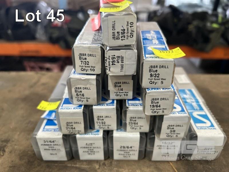DRILL BITS, STRAIGHT SHANK, SUTTON TOOLS, BLUE BULLET, JOBBER DRILL, IMPERIAL, ASSORTED SIZES, 1/2" TO 13/64", 16 x BOXES
