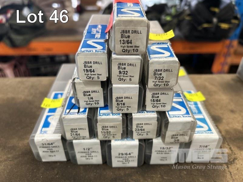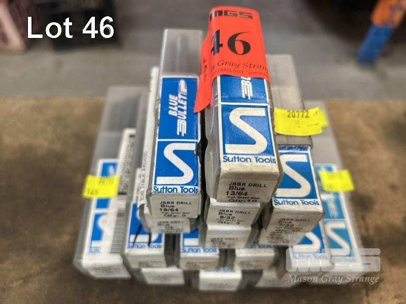 DRILL BITS, STRAIGHT SHANK, SUTTON TOOLS, BLUE BULLET, JOBBER DRILL, IMPERIAL, ASSORTED SIZES, 1/2" TO 13/64", 16 x BOXES