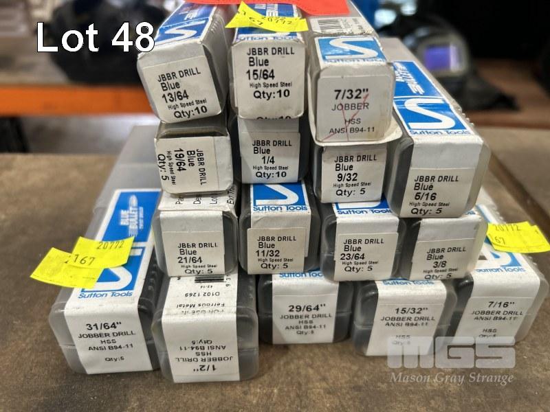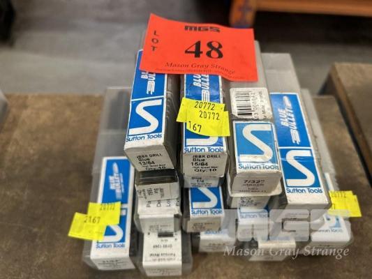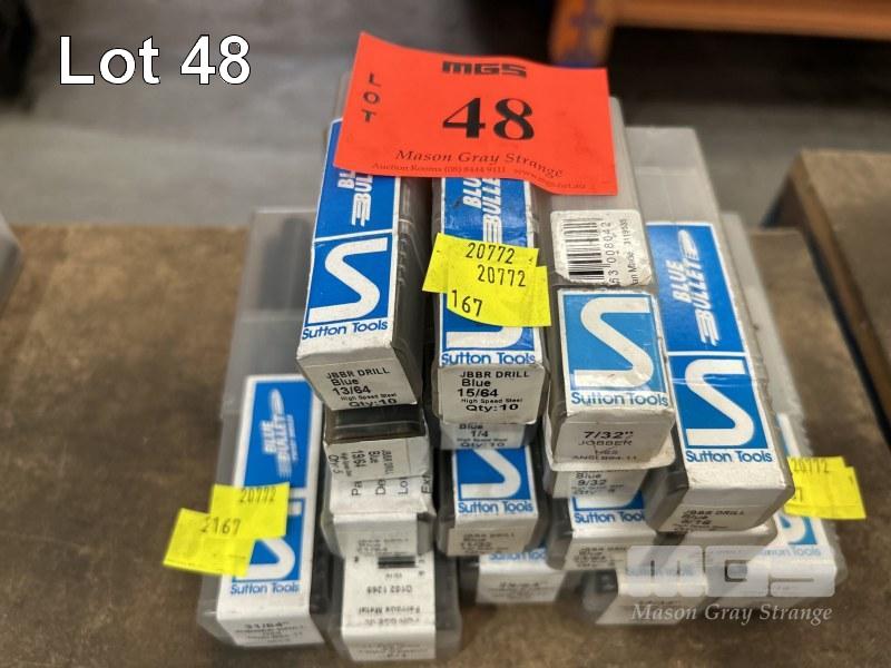 DRILL BITS, STRAIGHT SHANK, SUTTON TOOLS, BLUE BULLET, JOBBER DRILL, IMPERIAL, ASSORTED SIZES, 1/2" TO 13/64", 16 x BOXES