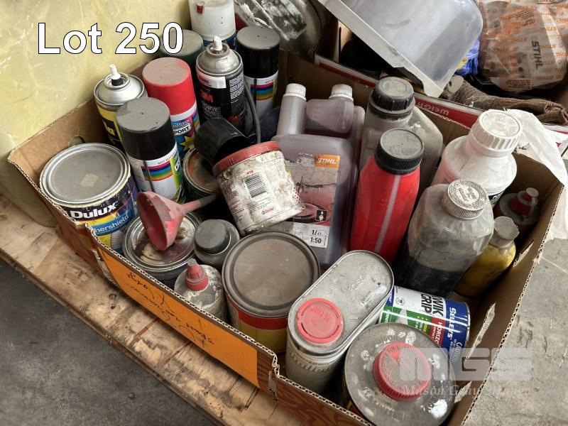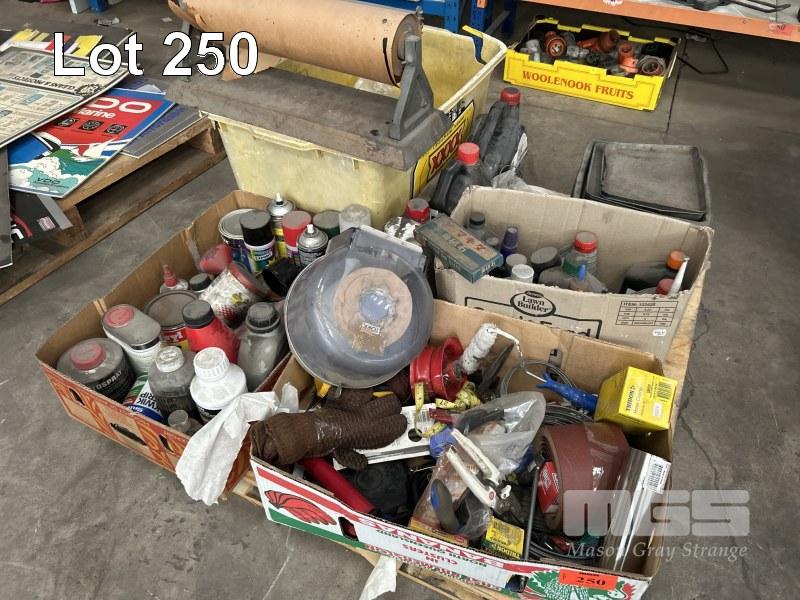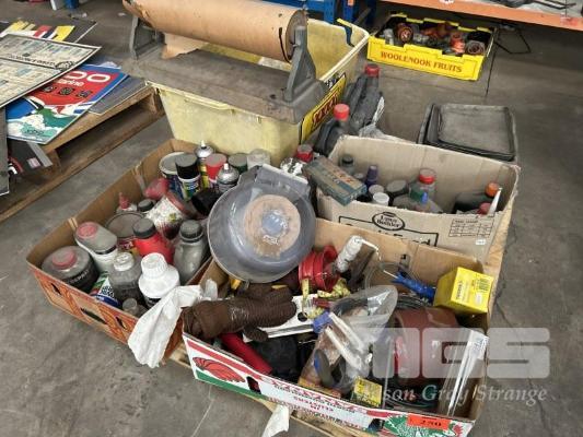 AUTOMOTIVE OILS, GREASE, SOLVENTS & PAINTS, CLAMPS, SANDPAPER, ETC