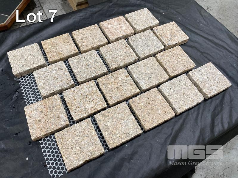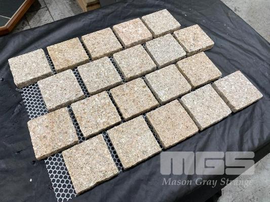 COBBLE STONES, YELLOW GRANITE, 20m2 TOTAL, SHEET SIZE: 540 x 430 x 20mm, STONE SIZE: 100 x 100 x 20mm, PACKAGED IN TIMBER CRATE