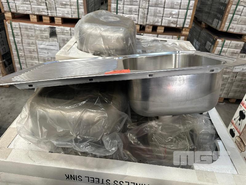 4 x STAINLESS STEEL, SINGLE BOWL SINKS, 775 x 480mm WITH FITTINGS AS NEW