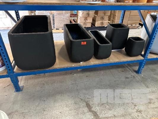 SET 5 x BLACK PLANTER POTS, COMPOSITE MATERIAL