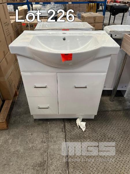 BATHROOM VANITY WITH CHINA TOP SINK, WHITE, SINGLE DOOR, 2 DRAWER, CHROME HANDLES, 750 x 500 x 880mm (H) RRP $654.26, NEW IN BOX!