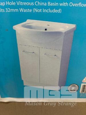 SEMI RECESSED BASIN, ESTILO 610 (W) x 430 (D) x 850mm (H) WHITE MELAMINE FINISH SINGLE TAP HOLE