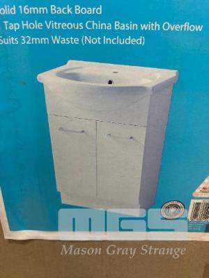 SEMI RECESSED BASIN, ESTILO 610 (W) x 430 (D) x 850mm (H) WHITE MELAMINE FINISH SINGLE TAP HOLE