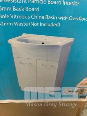SEMI RECESSED BASIN, ESTILO 610 (W) x 430 (D) x 850mm (H) WHITE MELAMINE FINISH SINGLE TAP HOLE