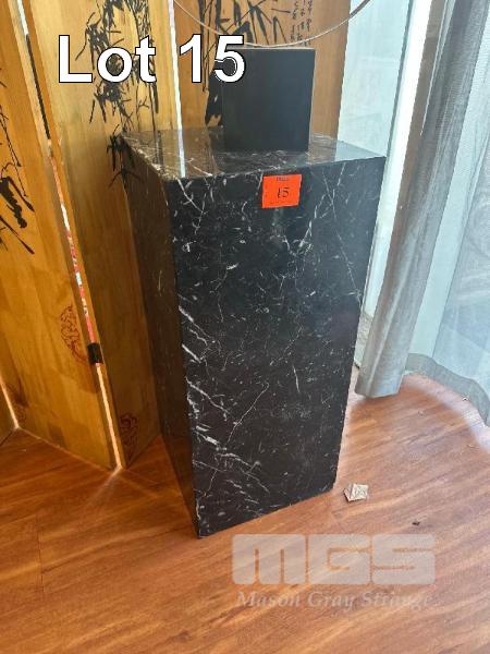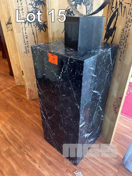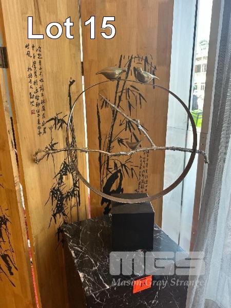 MARBLE PEDESTAL 400 x 400 x 900mm (H) WITH BIRD & BRANCH CIRCULAR METAL SCULPTURE