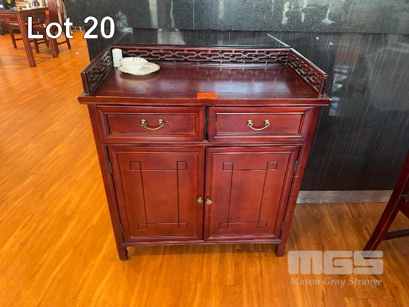 RED TIMBER BANQUET, 2 DRAWER, 2 DOOR, 900 x 450 x 900mm (H)