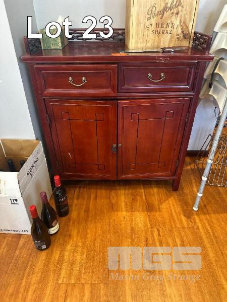 RED TIMBER BANQUET, 2 DRAWER, 2 DOOR, 900 x 450 x 900mm (H)